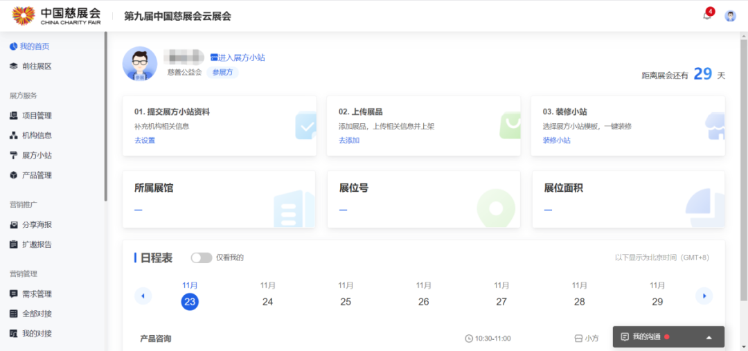 参展方通过账号密码登录,验证成功后,进入个人中心界面。如下图所示: