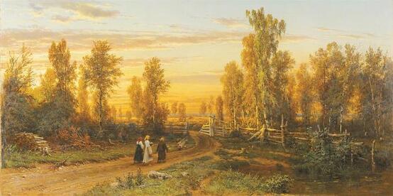 在首届艺术展上引起巨大轰动的《夜》出自希施金之手,这幅作品被评论家们盛赞为希施金无可挑剔的杰作,画家本人则被誉为“俄国风景画发展上的一个独立学派,一个里程碑式的人物。”希施金的笔触有温暖的质感,他描画的夜、森林、村庄没有黑暗寒冷,夕阳晕红云朵的俄罗斯仲夏日暮,有静谧朴素的芳香。这幅佳作广为收藏家喜爱,直到其诞生100年后的1971年,才得以入藏特列恰科夫美术馆。