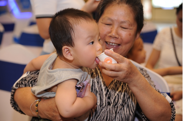 活动现场一位小朋友正在品尝九阳静音破壁机YJ08做的饮品