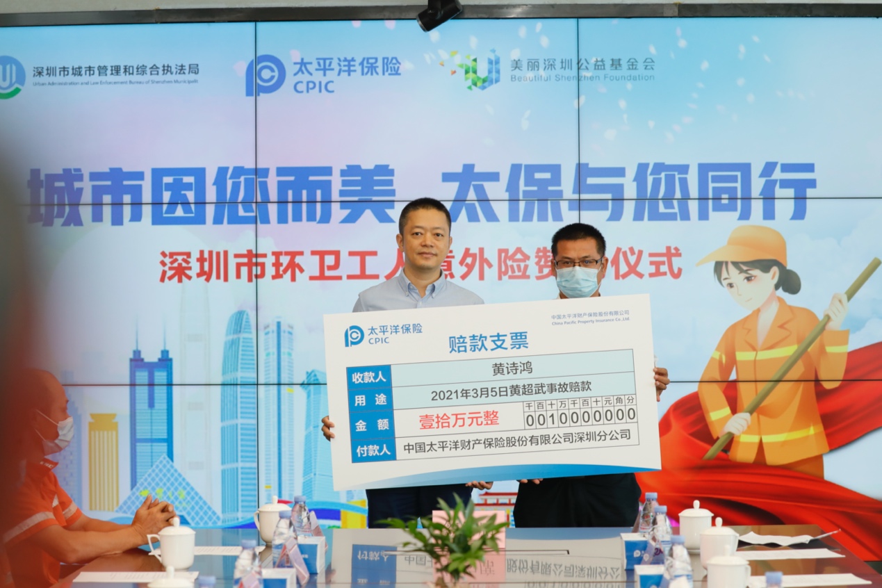 中国太保产险深圳分公司与美丽深圳公益基金会签署了赞助协议,并举行赞助仪式,深圳市城管和综合执法局党组成员、二级巡视员邝龙桂对中国太保产险深圳分公司的暖心理赔和赞助行为表示感谢:“今年是太平洋产险深圳分公司为我市环卫工人赞助意外险的第三年,这份善举让身处高危工作环境的环卫工人多了一份专属保障与温暖。太平洋产险深圳分公司是一家具备公益精神、关心环卫工人、践行社会责任、温情满满的保险公司。”