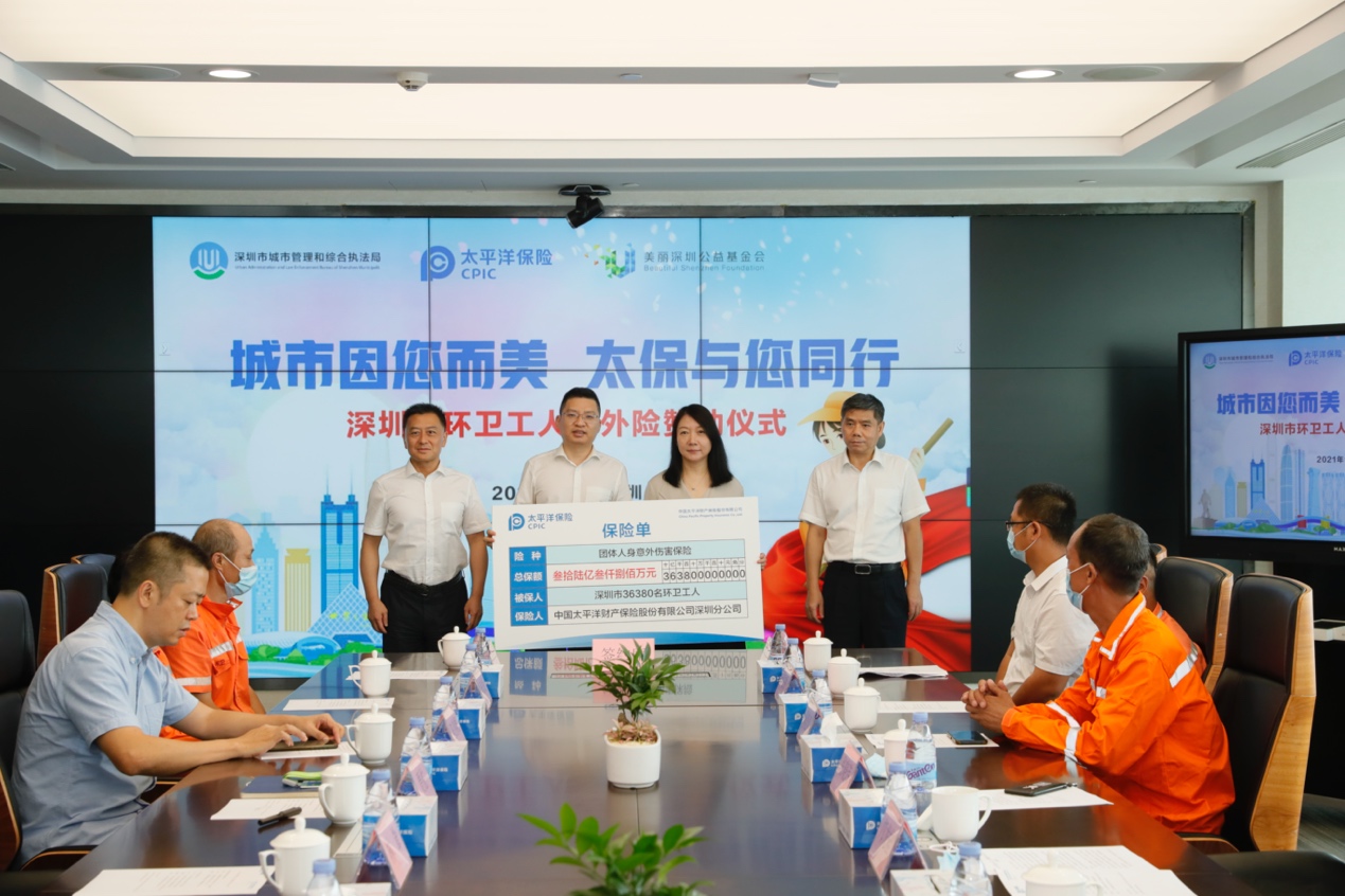 读特客户端•深圳新闻网2021年9月15日讯 (通讯员 罗敏)9月15日,由深圳市城管和综合执法局、中国太保产险深圳分公司、美丽深圳公益基金会联合发起的“城市因您而美,太保与您同行”意外险赞助仪式顺利举行。中国太保产险深圳分公司向深圳市龙岗区、宝安区、光明区、坪山区、大鹏新区共计36380名环卫工人赞助每人10万元保额的团体人身意外伤害保险,合计赞助保额超36亿元人民币。自2019年起,中国太保产险深圳分公司已连续三年向深圳市三万余名环卫工人赞助保险,每年总额均超过30亿元人民币。