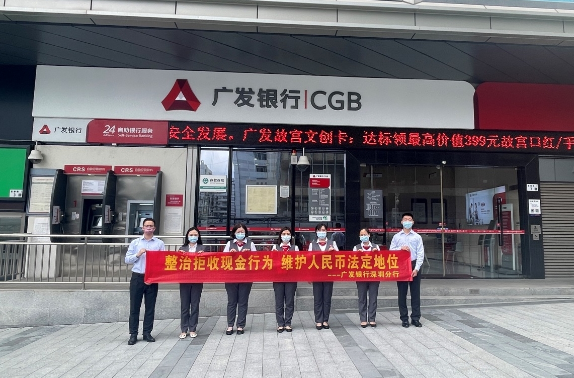 为了服务民生保障,畅通流通循环,维护人民币法定地位,提升公众对现金服务的获得感,广发银行深圳分行开展了整治拒收人民币现金常态化宣传活动。