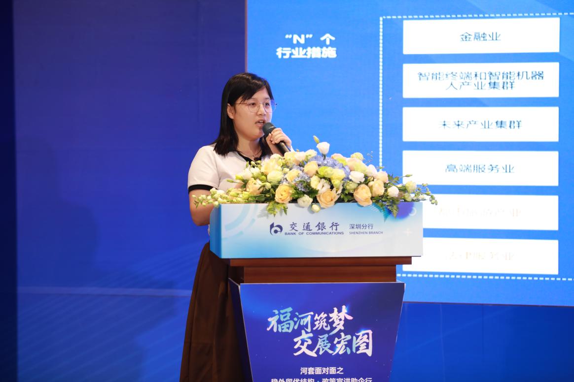 深圳市福田区投资推广和企业服务中心介绍了深圳市和福田区“1+9+N”产业高质量发展支持政策,从政策背景、政策内容、政策申报等内容出发,精准解读,帮助参会企业全面了解政策要点,力争着力打造更具竞争力的国际金融中心和金融科技中心。