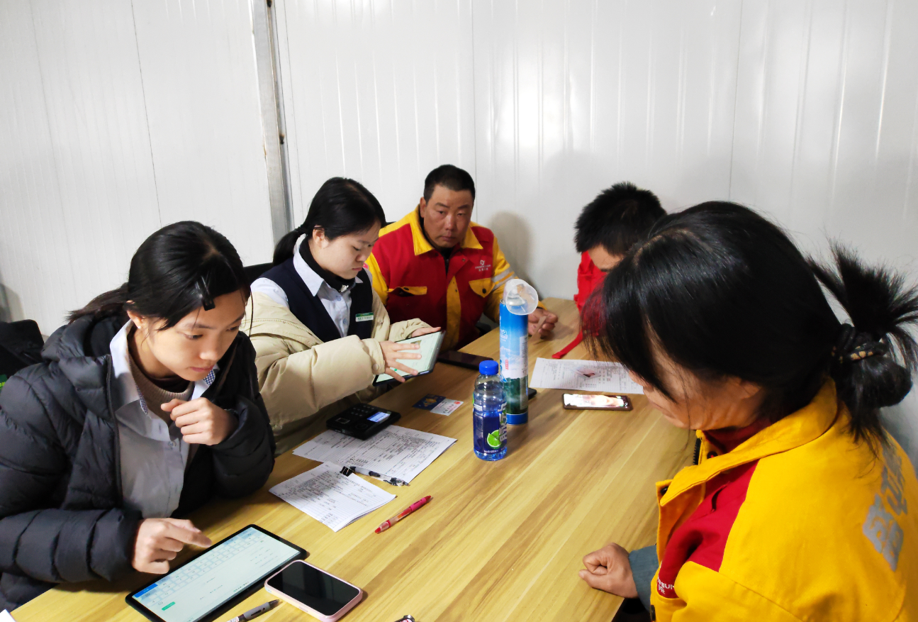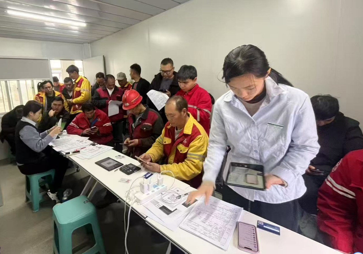 面对困难,陈嘉涛深知客户需求无小事。他果断决定带队前往现场,为当地员工集中办理银行卡开卡及工资代发相关手续。从繁华的深圳到偏远的高原,路途遥远、舟车劳顿,加上高原反应带来的身体不适,让整个团队面临严峻考验。但他们没有丝毫退缩,抵达后便迅速搭建临时服务点,投入到紧张的工作中。