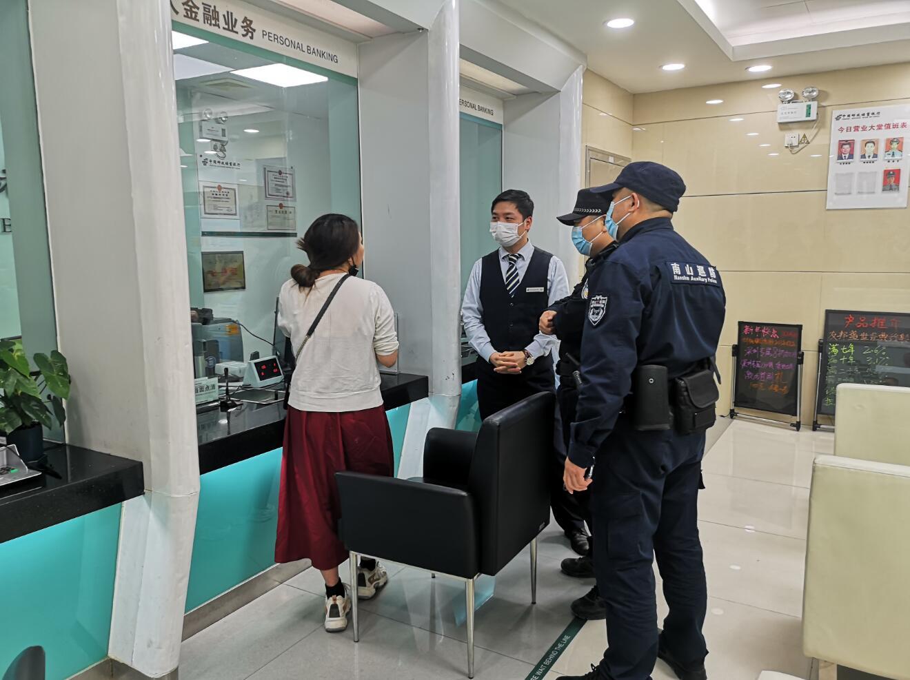 邮储银行西丽支行工作人员与民警共同帮助胡女士解决问题
