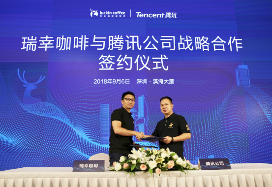 9月6日,瑞幸咖啡与腾讯在深宣布达成战略合作,双方将发挥各自优势,联手探索大数据、移动互联网、人工智能等技术在线下场景的应用转化与微信小程序的智能化营销,助力建设瑞幸咖啡 “智慧零售”解决方案。