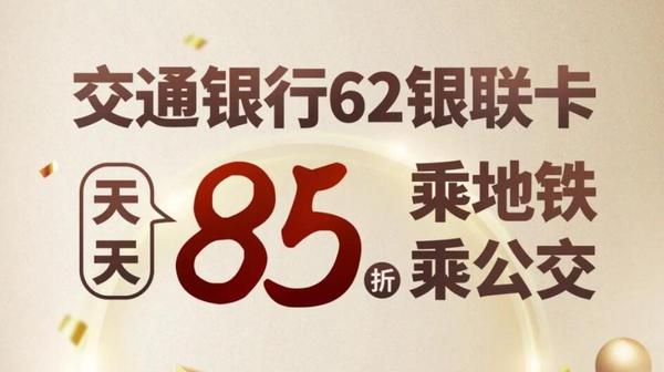 天天85折!交通银行62银联卡乘地铁乘公交福利