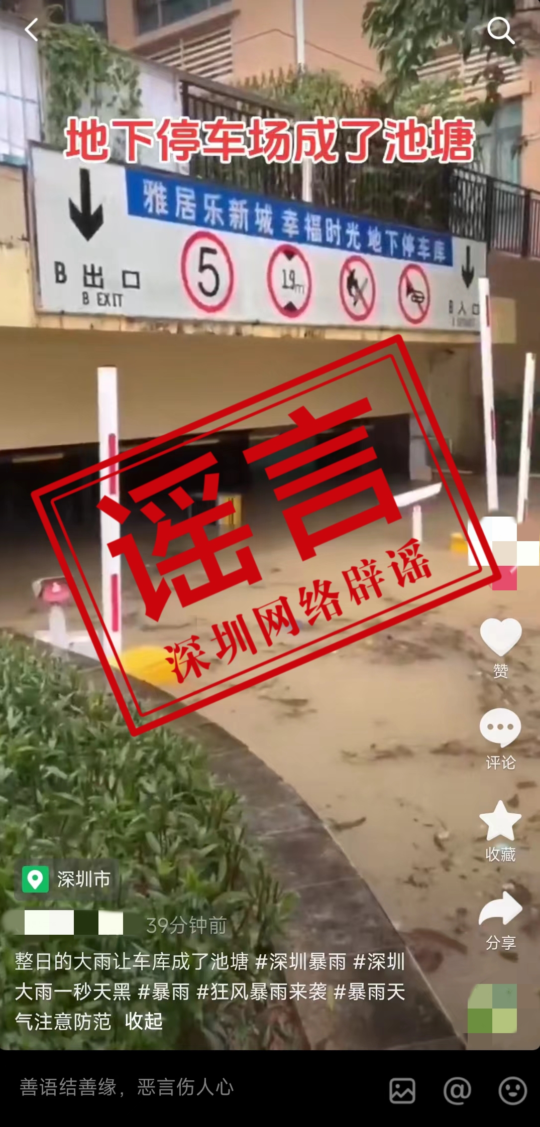 深圳新闻网2024年5月4日讯(记者 李紫晴)5月4日,抖音有网民发帖称深圳整日大雨让车库成了池塘。视频显示为雅居乐新城幸福时光地下停车库。