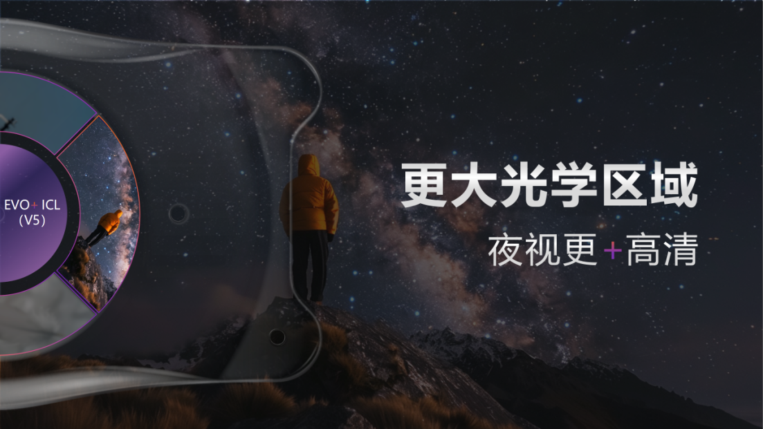 EVO+ICL(V5)具有更大的光学区,可减少夜间视觉干扰,为在暗光环境下活动的患者带来潜在获益。