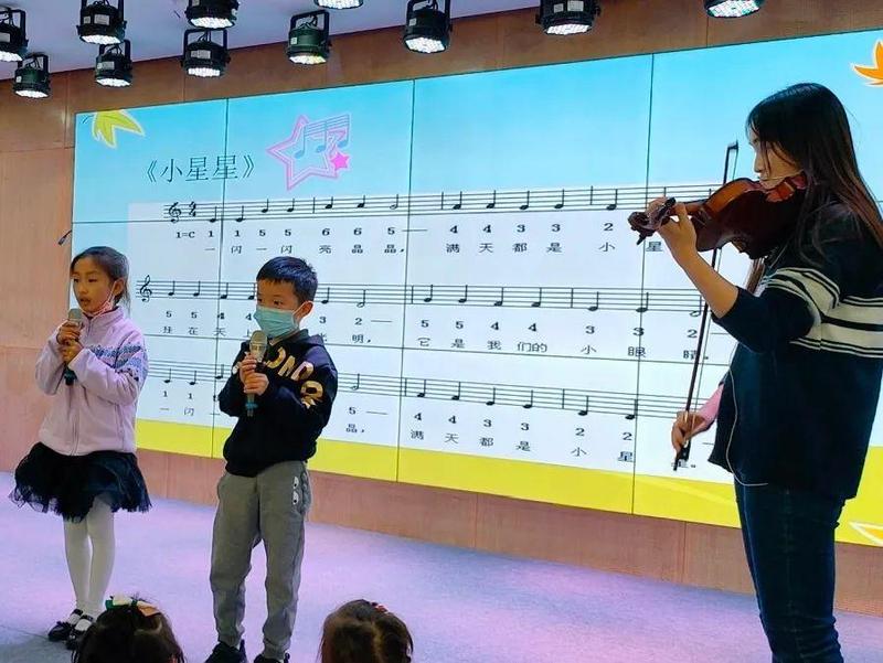 演奏是对音乐作品的再次创作,让小朋友们跟随音乐旋律拍打,感受音乐节拍,并用趣味的讲解让孩子们了解五线谱以及音符的含义,老师演奏小提琴乐曲让孩子来感受乐曲所表达的旋律情感,并用肢体动作表达。