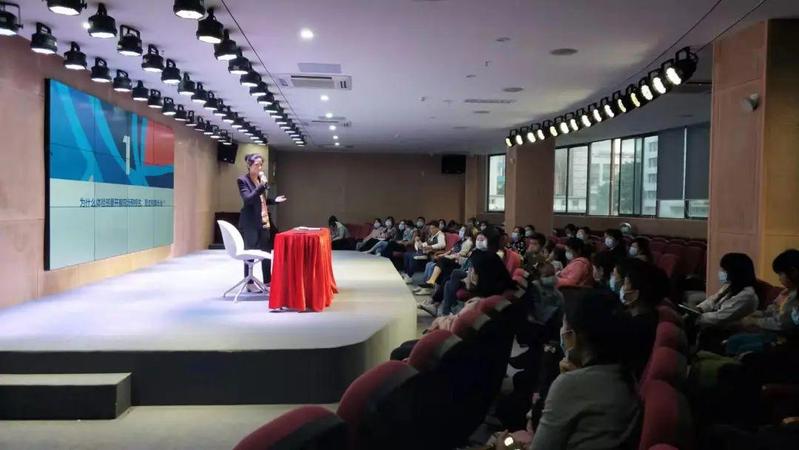 贴好名牌,排队有序地进入报告厅内