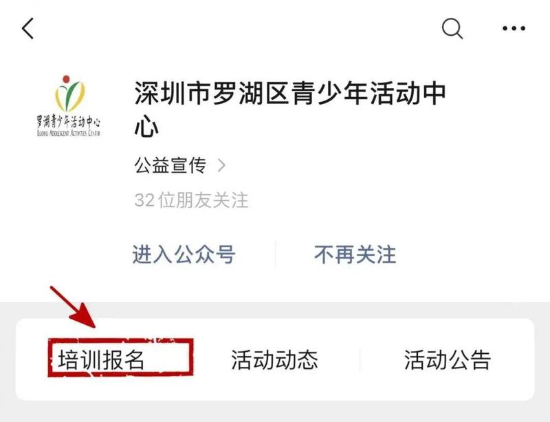 报名采取网上报名缴费方式,请家长先关注“深圳市罗湖区青少年活动中心”微信公众号,点击“培训报名”即可注册报名。