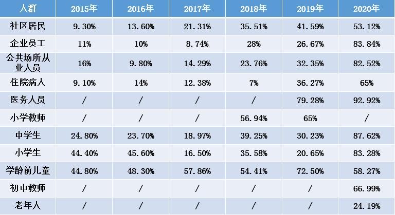 罗湖区2015年-2020年各类人群健康素养水平比较