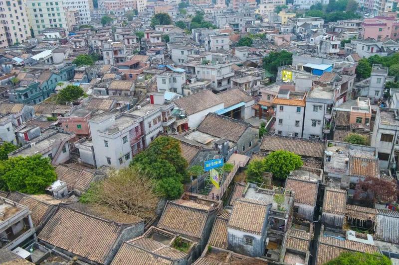 蚝壳屋掩映在众多新旧房屋中间