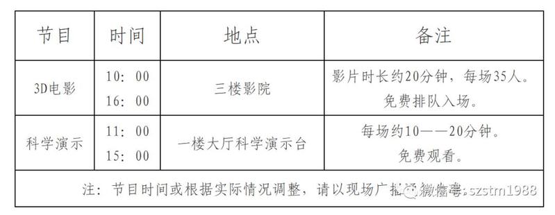2、展教活动目前仅开放3D影院和科学演示,具体场次如下: