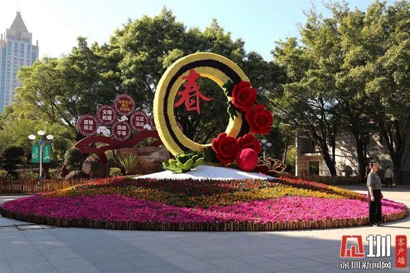 从龙潭公园大门入园,春的气息扑面而来。为了庆祝新春佳节,龙潭公园精心打造了一处大型花卉景观,大红的玫瑰,绿叶点缀,红黄紫三色鲜花为底座,营造了浓浓的喜乐氛围,不少游人停下脚步拍照留念。