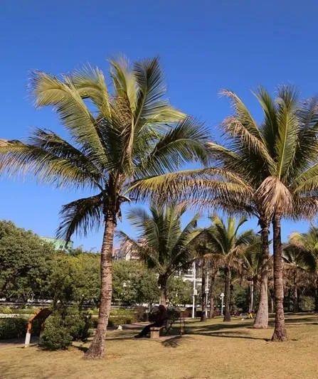 沿着小路往里走,高大的树木成林,遮就了一条凉爽的林荫道。结合本身的自然条件,龙潭公园园林绿化以植物造景为主,园内种植榕树、刺桐、凤凰木、盆架子、紫荆、蒲桃、水杉、油棕、大王椰等植物140多种。