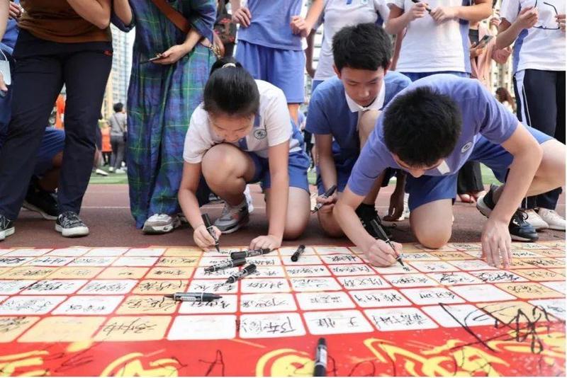 金稻田学校在体育馆隆重举行“奋战百日,决胜中考”金稻田学校初三学子百日冲刺誓师大会。全体师生在中考誓词横幅上签上自己的信心和承诺!这一份承诺更是一份力量,希望全体学子能够落实行动,勇往直前,再创辉煌!