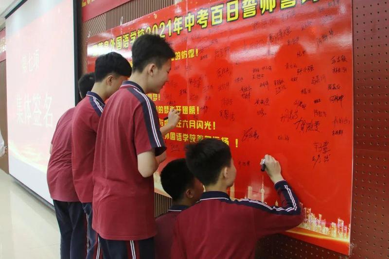 3月11日下午,科城实验学校初中部在三楼报告厅隆重的举行了2021年中考百日誓师大会活动。初三学子在写有“奋战百日,三载拼搏终有回报;决战中考,你我期待定成现实”的横幅上签下了自己名字,坚定了必胜的信念。