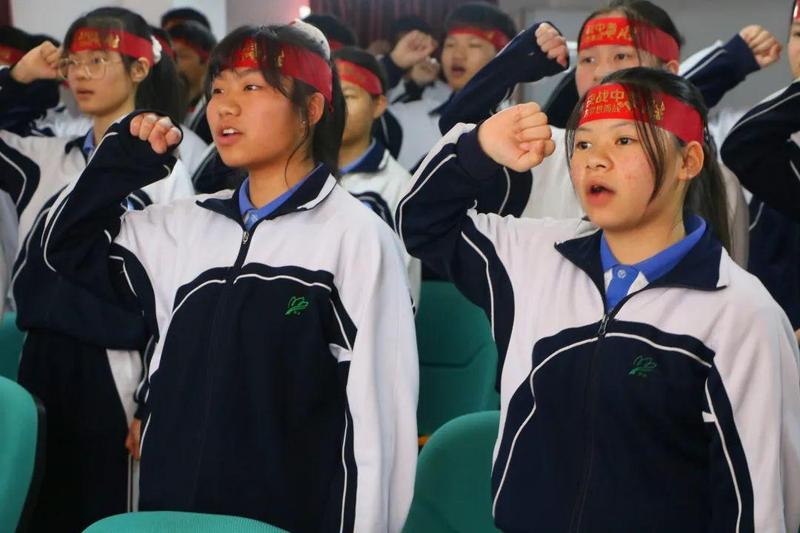 现场,老师们郑重宣誓,誓言铿锵有力,掷地有声,这是全体老师给同学们的真情鼓励和呐喊助威!全体九年级学生也庄严宣誓,誓言划破天空!誓言震撼大地!誓言即出,定记在心,明于行!