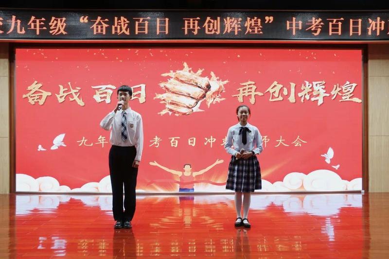 3月11日,九年级全体师生、家长齐聚在多功能厅,隆重举行2021届中考百日誓师大会。铿锵有力的青春誓言划破长空,震撼大地,抒发了全体同学奋力拼搏、勇于挑战的豪情壮志。中考百日誓师,鼓舞了师生的士气,坚定了师生决胜中考的信心。