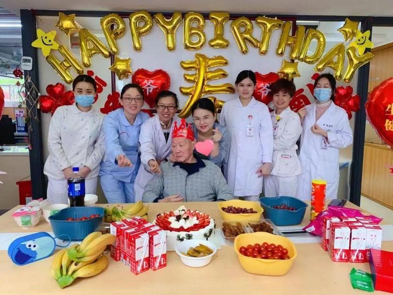 “一般家属都很开心,立刻同意我们给老人在病房办个生日会,我们就买漂亮的气球布置病房,定上一个大蛋糕,买些水果和他们能吃的零食,跟同一个病区的老人一起,热热闹闹地唱起生日歌、吹蜡烛、吃蛋糕,仪式感满满。”