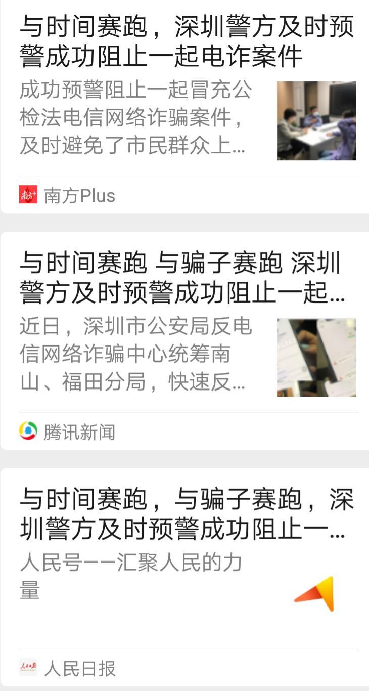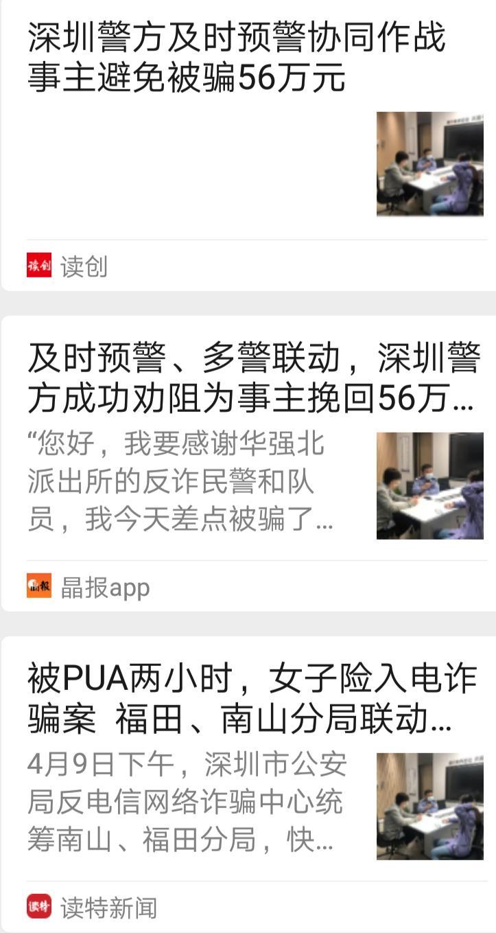 多家媒体报道深圳警方及时预警成功阻止一诈骗案件