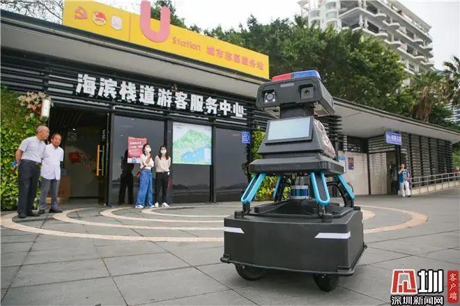 盐田区城市管理和综合执法局相关负责人介绍,这款机器人具有巡逻执勤、全景监测、监测预警、智能分析、警告威慑、人机交互等功能,管理人员可通过后台操作机器人进行远程喊话,也可进行音视频交互对讲,发布广播通知、及时警示不文明行为等,一旦市民遇到紧急情况,也可通过红色按钮与后台管理人员进行通话求助。