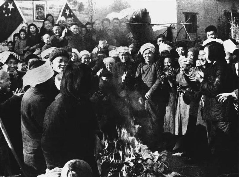 土地改革中湖南岳阳县策口乡农民烧毁旧地契