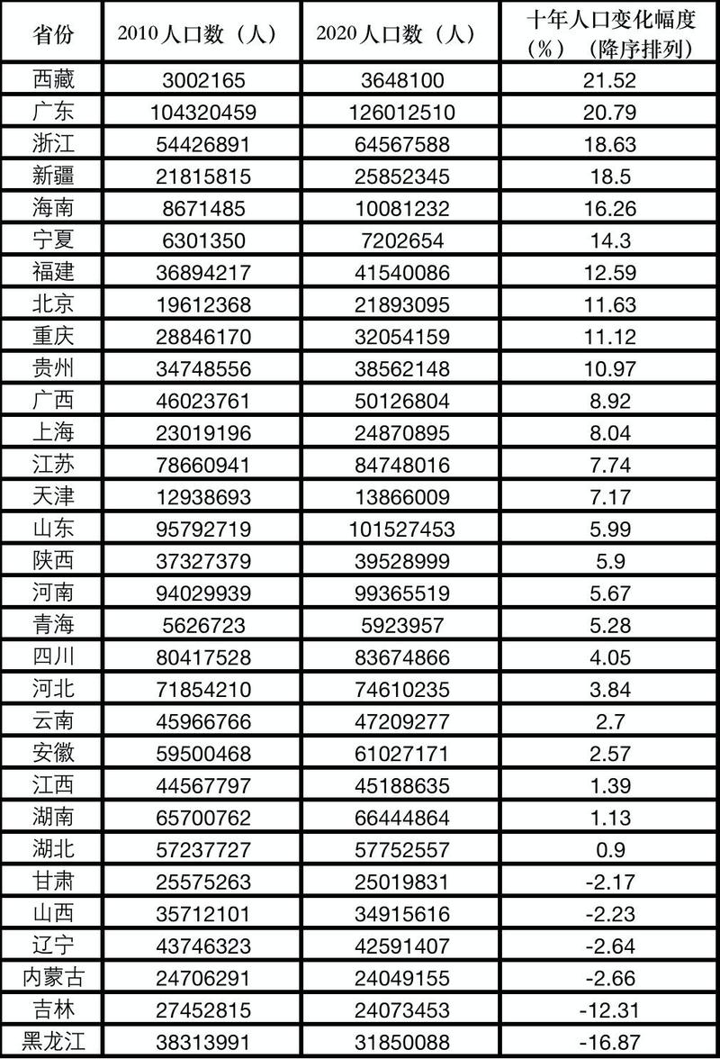 各省份人口占比变化呈现明显的区域特征