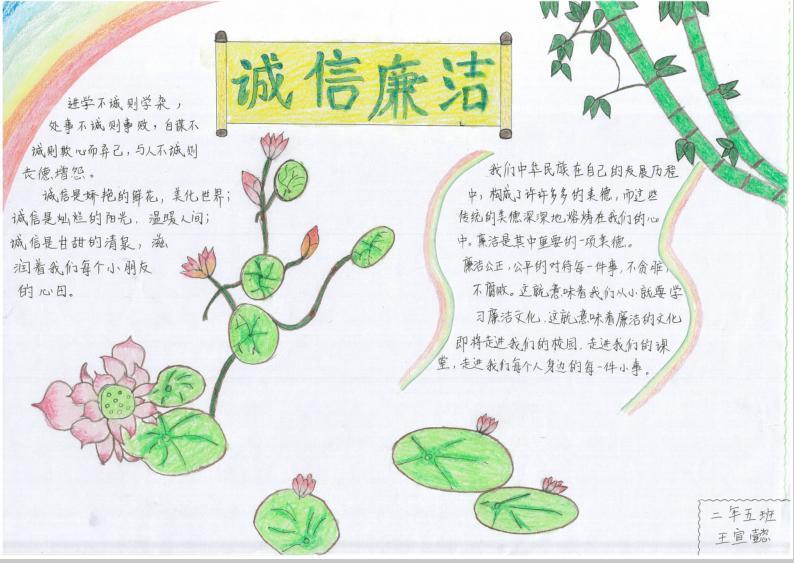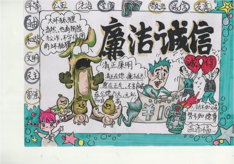 区纪委监委联合区教育局实施光明区“家校护廉”工程,充分利用校园主阵地开展廉洁诚信文化活动。各学校根据实际情况及学生不同年龄段的特点,自主开展廉洁作品征集、廉洁主题微课、致父母的一封信、主题演讲比赛及讲故事比赛等“六个一”系列活动。本期围绕廉洁作品征集活动,推送几名学生的廉洁手抄报作品,供大家欣赏。