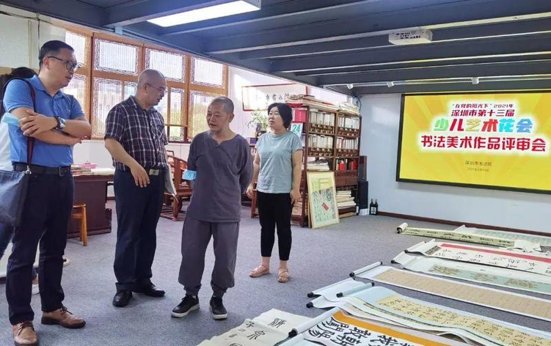由深圳市文化馆总承办、深圳市书法院具体承办的“在党的阳光下”深圳市第十三届少儿艺术花会美术书法作品展评审会于2021年5月24日在深圳市书法院顺利举行。深圳市文化广电旅游体育局公共文化处二级调研员、深圳市文化馆党总支书记、常务副馆长曾昶莅临评审会指导。