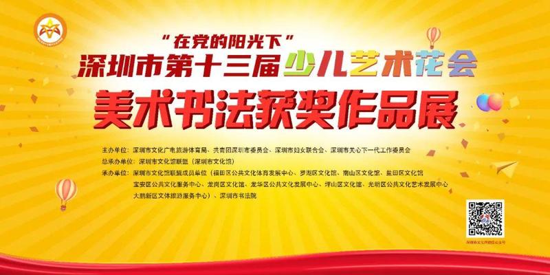 温馨提示:限于场地,此次只展出深圳市第十三届少儿艺术花会美术书法金奖、银奖部分作品。请前往观展的市民朋友务必戴好口罩,扫码登记后有序入场。