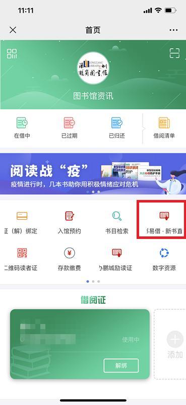 2、先输入读者证号及密码绑定读者证后点击“书易借·新书直借”。
