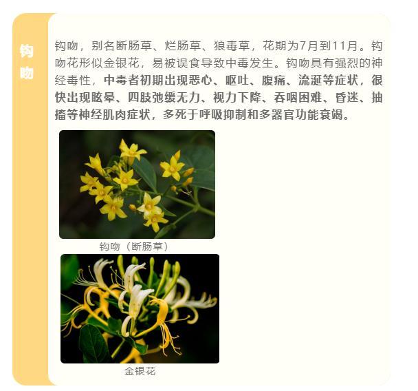 有些有毒植物与我们经常食用的植物外观相似,易被误食导致中毒。