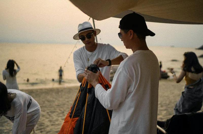 ▲在大鹏海边露营的年轻人