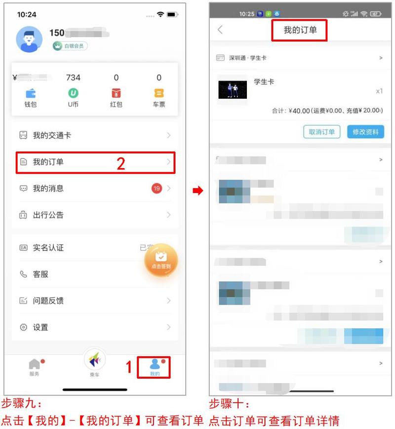 ⑤ 点击【我的】-【我的订单】查看订单信息