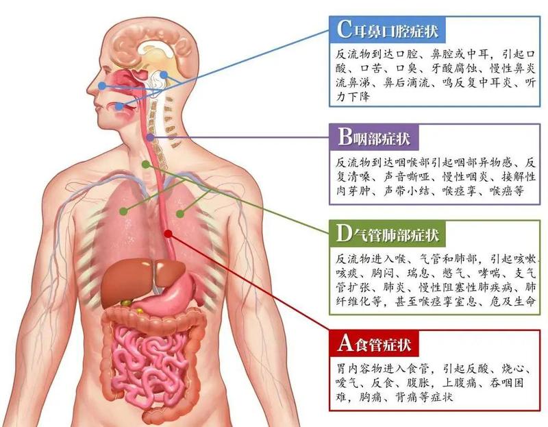 而当胃酸突破咽喉防线,还会使敏感的呼吸道灼伤,于是咳嗽、咽喉异物感等呼吸道症状也会随之而来。