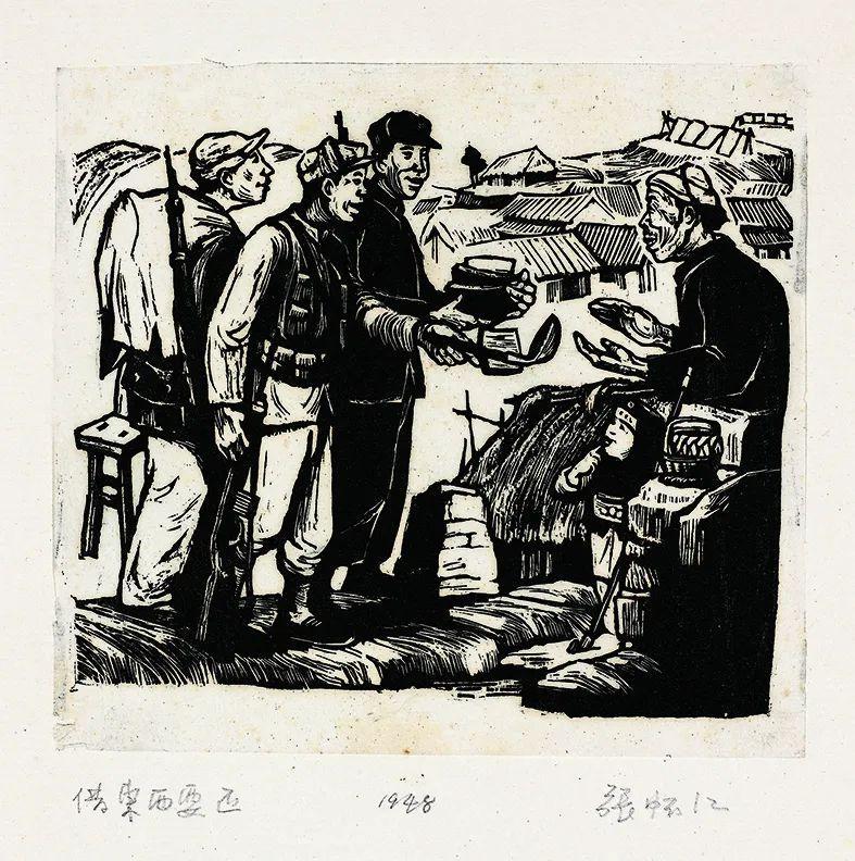 版画精神具有战斗性。《三大纪律八项注意》是朱维明的老师张怀江,及他的朋友陈沙兵、夏子颐的合作作品。他们三人扎根于浙南游击区,一手执笔,一手执枪,既是战士,也是艺术家。