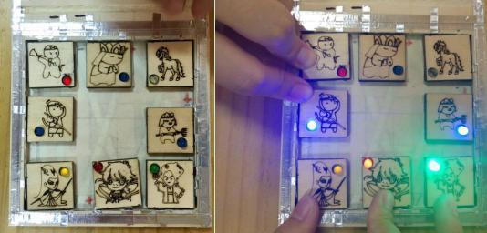 作品介绍:这是一款运用电学知识、激光切割机技术、电脑绘图技术创作而成的独特益智玩具,将华容道、《西游记》知识、灯光等元素合为一体,可玩性高。(指导教师:李逍逍、严俊、张晓芬)