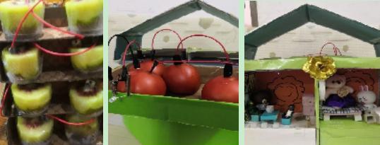 作品介绍:“地球一小时”是人们面对气候变化所采取的行动之一,然而在日常实际生活中,要想每个人都将节能思想都付诸实践还存在一定难度。因此本作品是想将废旧纸盒小屋和生物电池结合,让每个孩子都拥有一个DIY发电点亮小灯泡的房屋模型,从而在潜移默化中将节能环保的理念内化到生活当中。(指导教师:庾添玉、陈玲)