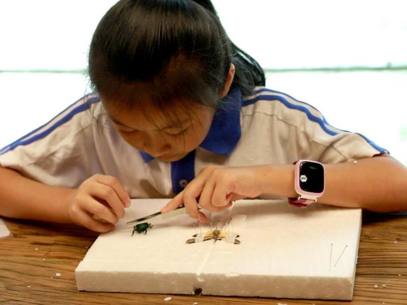 学校创设的三段进阶式的STEM课程《昆虫生态探究》,是一种探究形态的课程,包括低段《认识昆虫》、中段《昆虫的一生》、高段《昆虫与环境》,引导一到六年级的学生自主学习、合作探究,系统地学习昆虫知识,培养他们对生命世界的好奇心与探究能力,提升他们的科学素养。