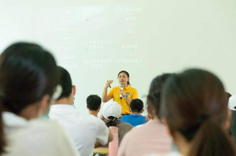 裁判工作方法、转身检查裁判工作方法等内容,并进行理论考试;实操部分进行现场分组,结合光明区青少年游泳测试赛的进行实操测试,让学员有更深刻扎实的学习收获。