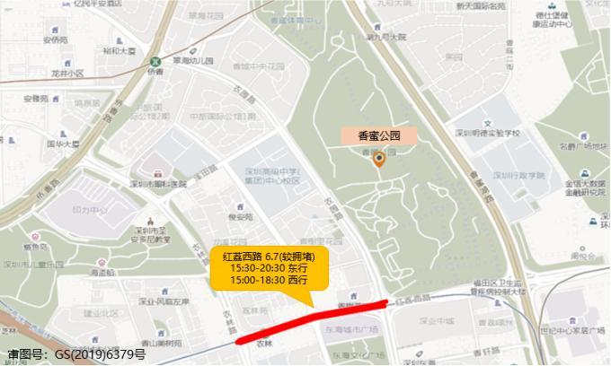 受测温亮码等防控措施影响,预计香蜜公园周边红荔西路交通拥堵将加剧。