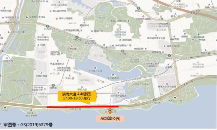 预计深圳湾公园周边的滨海大道(深湾一路-深湾五路,东行)将出现不同程度拥堵。