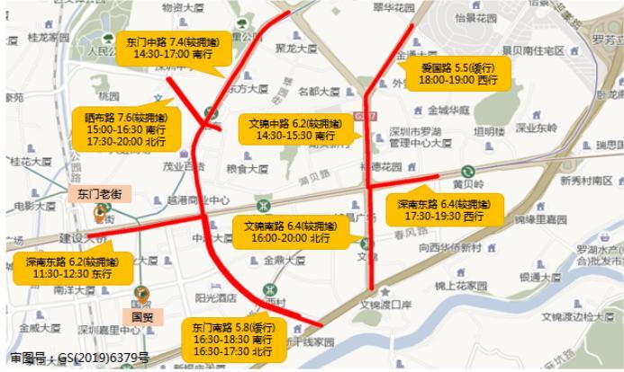 预计国贸-东门老街商圈受测温亮码等防控措施影响,一定程度上造成晒布路(人民北路-东门中路,双向)、东门南路(东门中路-沿河南路,双向)等周边路段交通拥堵加剧。