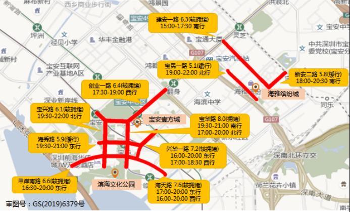 预计宝安壹方城-海雅缤纷城片区受测温亮码等防控措施影响,一定程度上造成兴华一路(海天路-新湖路,双向)、海天路(宝兴路-新安西路,双向)、宝华路(海府路-创业一路,双向)等周边路段交通拥堵加剧。