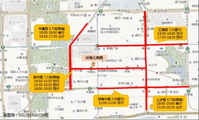 预计华强北商圈受测温亮码等防控措施影响,一定程度上造成红荔路(华强北路-红岭中路,双向)、振华路(华富路-上步路,双向)、华富路(深南中路-笋岗西路,双向)等周边路段交通拥堵加剧。