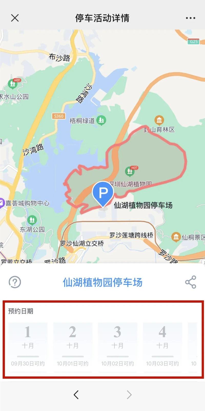 梧桐山、仙湖植物园内均不提供车位!