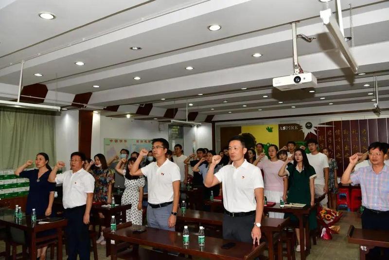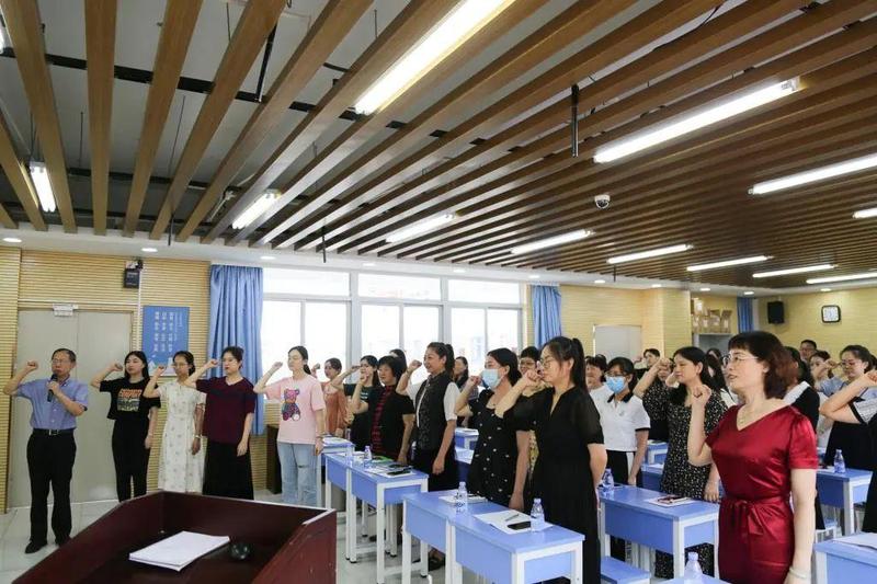 翠茵学校党支部组织新入职教师及全体党员进行宣誓活动,立志做到宣誓言,明责任,始于心,忠于行。参会教师表示要提高认识、坚守底线,形成争做标兵、见贤思齐的价值导向和重德养德的良好风尚。